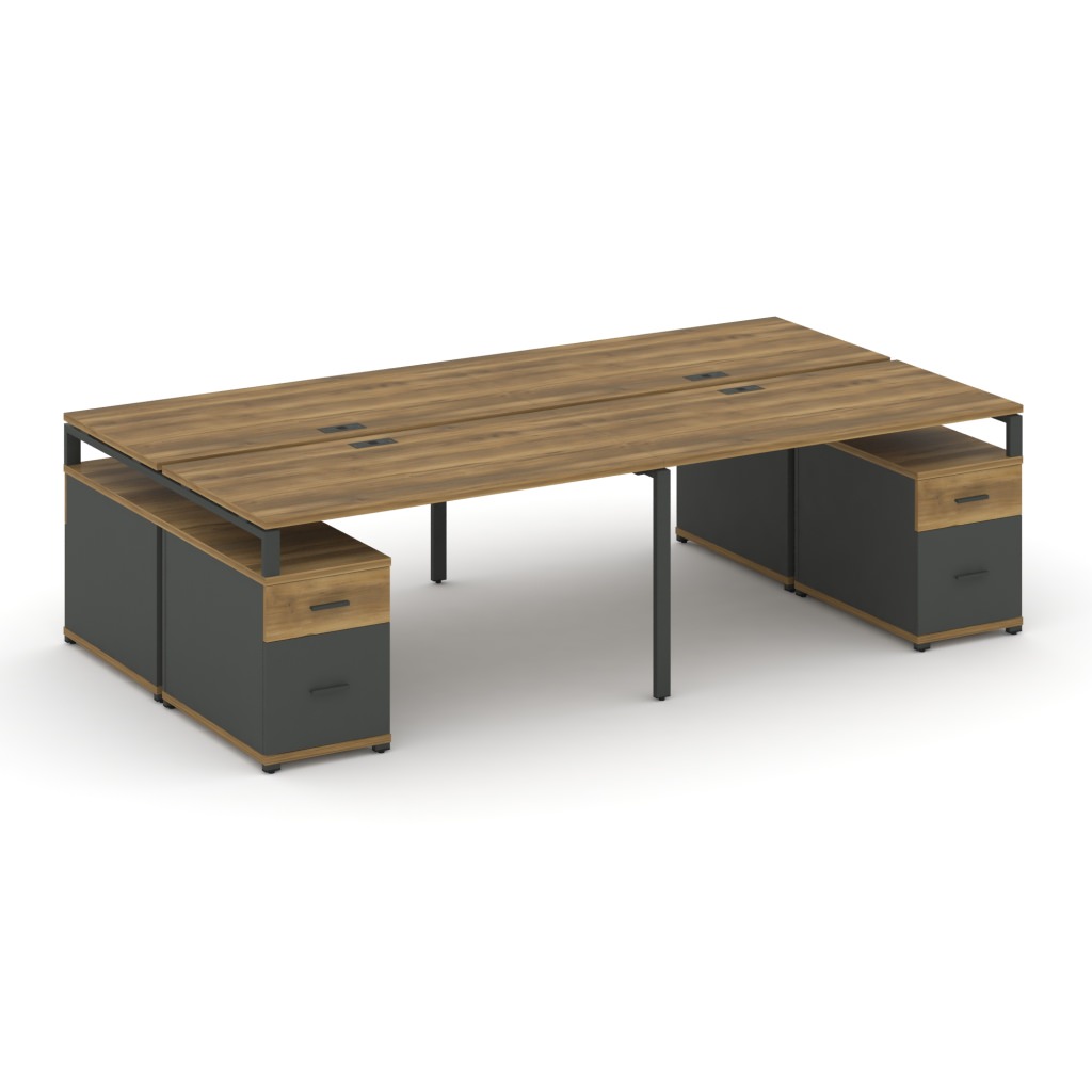 Рабочая станция на 4 места с двумя двухсторонними опорными тумбами Концепт 2760*1480*750 мм
