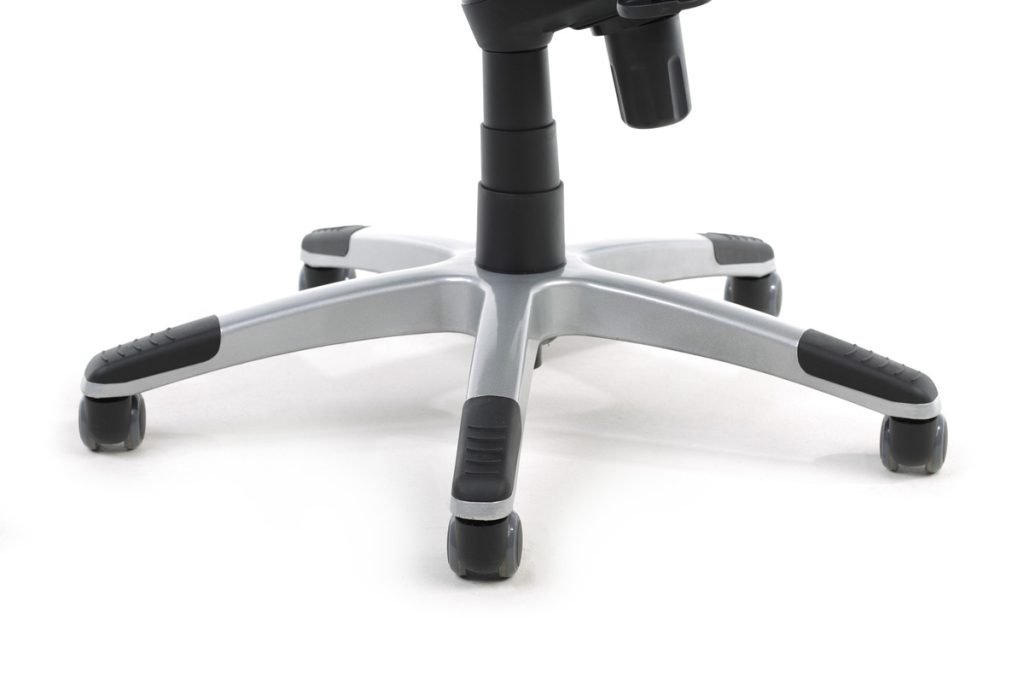 Кресло Albert установлено на прочную крестовину из углепластика, гарантирующую его безупречную работу при нагрузках до 250 кг максимально длительное время. Крестовина снабжена пластиковыми накладками. Накладки не только обеспечивают удобную посадку, не давая соскальзывать ногам, но и защищают поверхность от агрессивного воздействия. Качественные полумягкие ролики делают движения легкими, бесшумными и безопасными для полов из ламината и паркета.