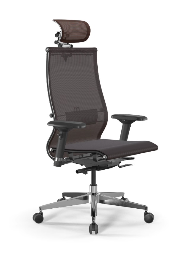 Спинка с регулируемой 2D поясничной поддержкой. Размер спинки: ширина 510 мм (L), высота 710 мм (2). Каркас спинки стальной с полимерным покрытием черного цвета, с хромированным молдингом. 2D поясничная поддержка регулируется по высоте и глубине. Обивочный материал спинки: сетчатая ткань TV, цвет коричневый.