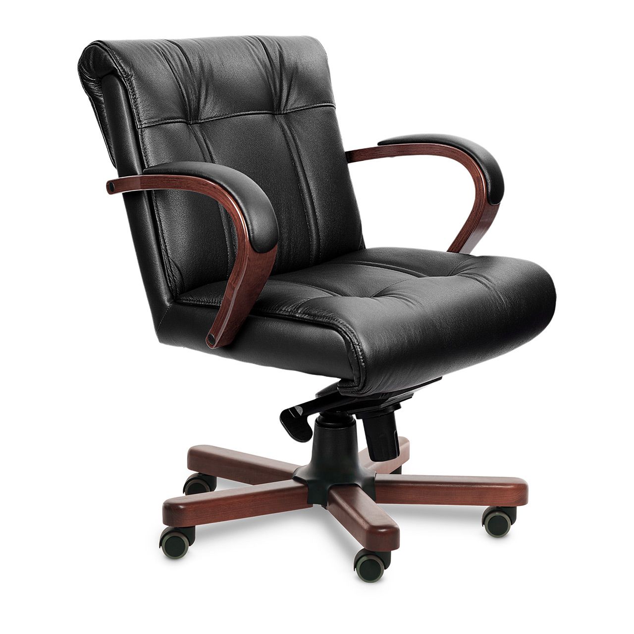 Крестовина металлическая сварная из профильной трубы 25*25*1,5 мм выдерживает нагрузку до 150 кг, лучи крестовины закрыты декоративными накладками из массива бука, тонированных и покрытых шелковисто матовым полиуретановым лаком (производство Италия) в несколько слоев. Ролики — паркетные прорезиненные (обеспечивают сохранность паркета, ламината). Каждый ролик рассчитан на нагрузку в 30 кг.