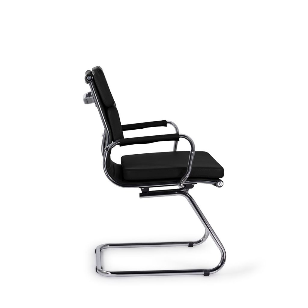 Кресло руководителя Кайман в современном металлическом каркасе. Комфорт создается благодаря мягким элементам спинки и сиденья. Зеркальный хромированный каркас и узкая крестовина задают современный стиль креслу. Кресло отлично смотрится в строгих и открытых кабинетах.