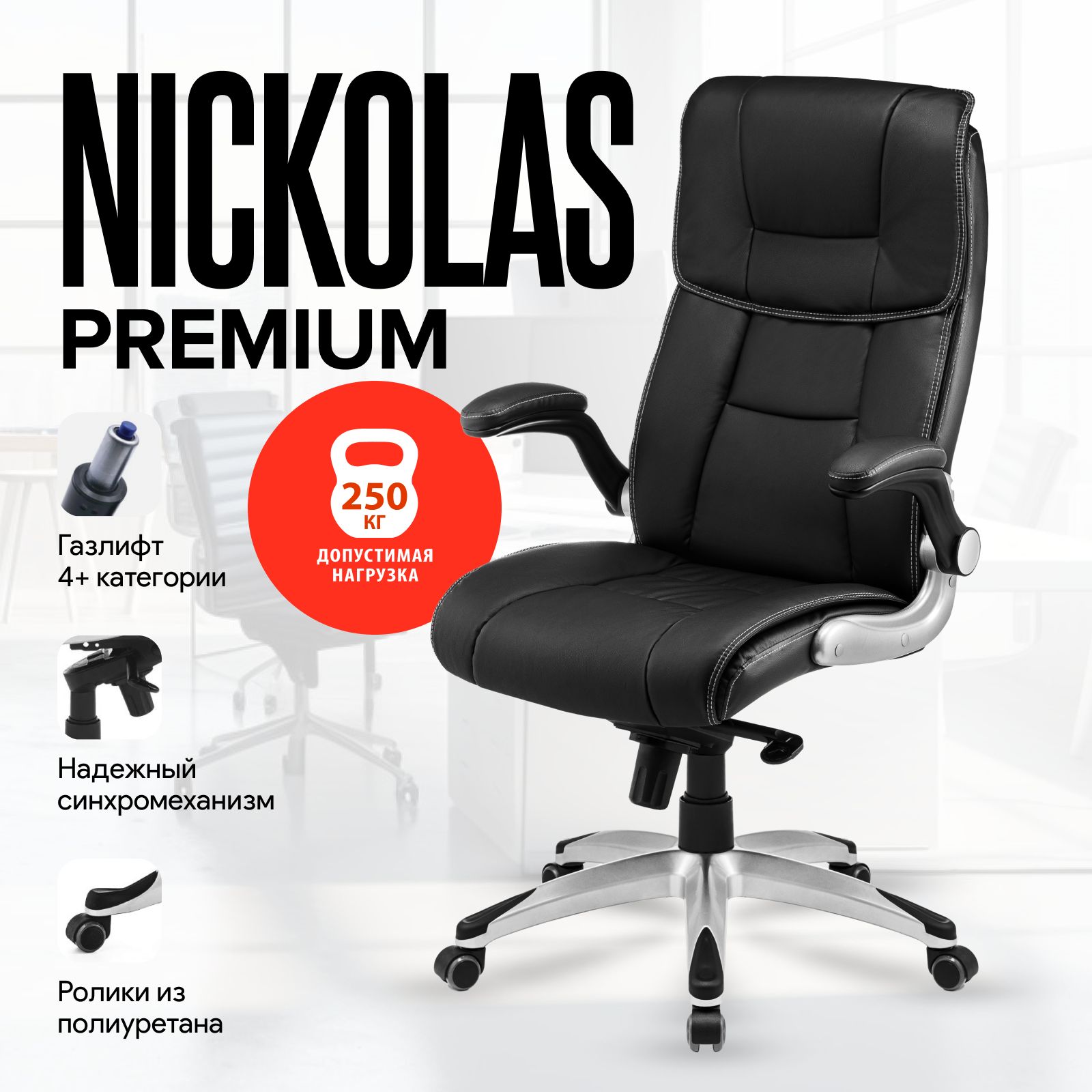 Кресло Nickolas (Николас) Premium, 250 kg, multiblock comfort, Черный Экокожа