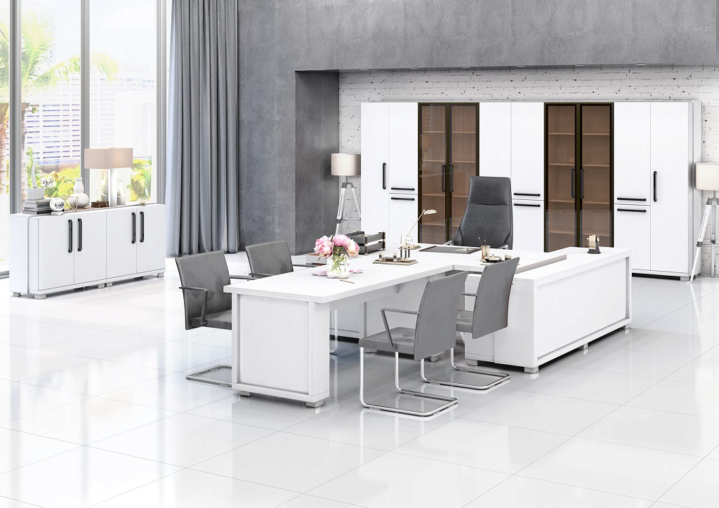 Grace Native – вершина престижа, мастерски подчеркивает утонченный вкус владельца. Богатство цветовой палитры – от изысканного белого до благородных темных оттенков, включая эффектные двухцветные решения – воплощает любую концепцию оформления. Встроенные модули подключения и выдвижные ящики с металлическими ручками обеспечивают высокую функциональность. Многообразие элементов впечатляет: столы руководителя с интегрированными тумбами, брифинг-приставки, журнальные и переговорные модели, шкафы различной высоты. Матовое стекло в сочетании с толстостенной ЛДСП создает гармоничный облик без лишних деталей. Каждый компонент – продуманное воплощение баланса между эстетикой, комфортом и практичностью.