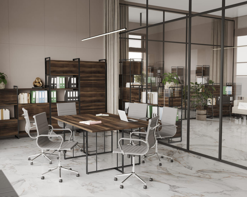 Коллекция Рифт Директ — это баланс статуса и функциональности. Мебель создана, чтобы обустроить рабочее пространство, идеально отвечающее потребностям руководителя.