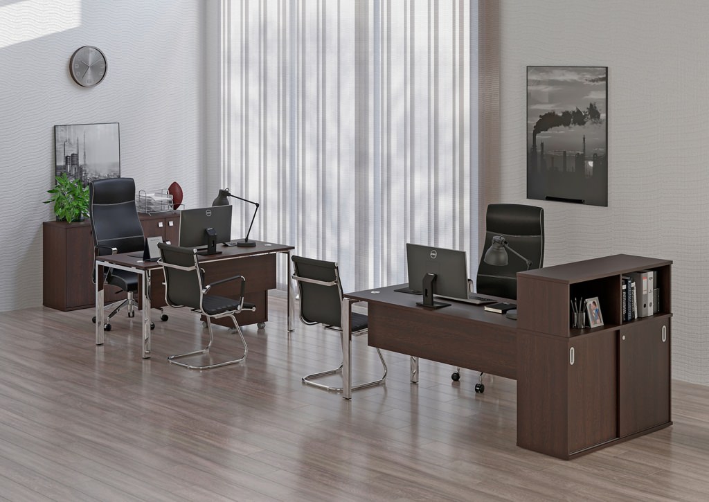 Модное решение для кабинета руководителя Metal System Direct | Метал Систем Директ - это блеск хрома в сочетании с очень популярными цветовыми решениями. Ноги из нержавеющей стали - надежность. Парящие столешницы и присоединенные тумбы, решение в лучших традициях, то что сейчас цениться на рынке офисной мебели. Это современная мебель, с помощью которой можно оформить в едином стиле кабинет руководителя, рабочие места персонала и переговорные комнаты.