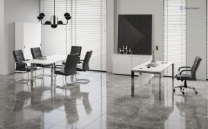 Кабинет руководителей Onix Direct Lux – это сочетание современного дизайна и функциональности. Уникальный каркас из нержавеющей стали треугольного сечения добавляет стильную нотку в интерьер. Onix Direct Lux станет центром притяжения главных идей для развития бизнеса.