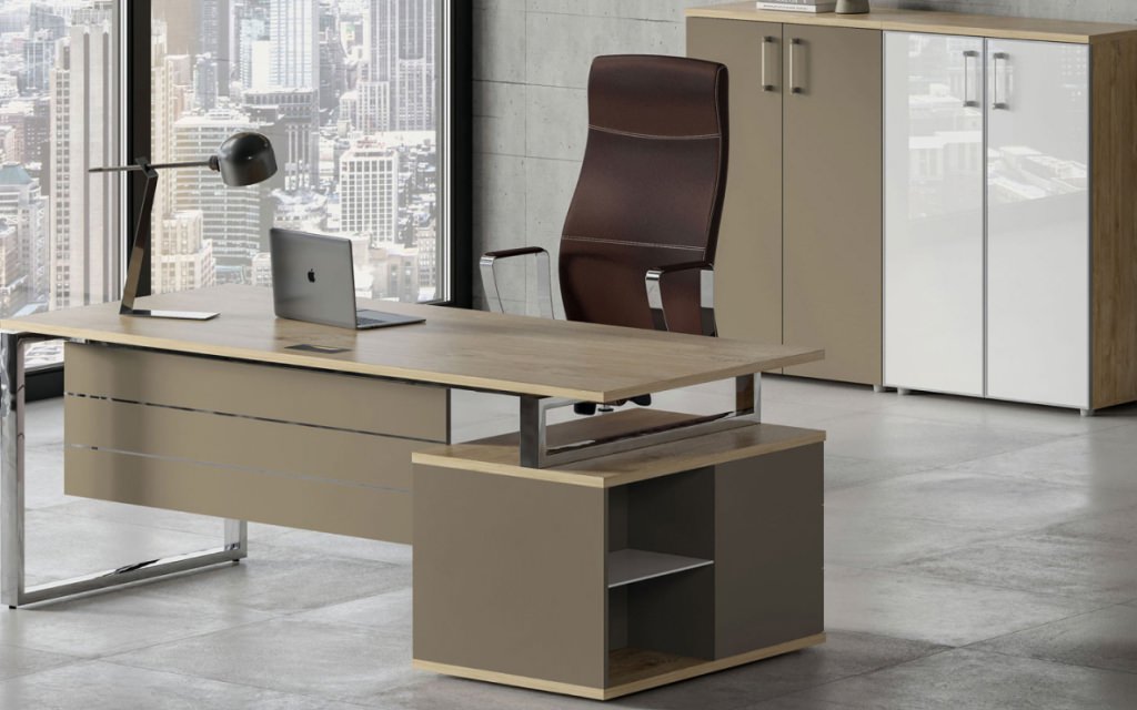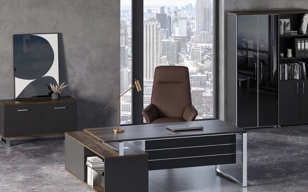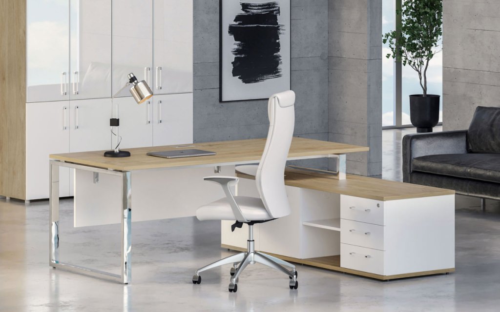 Сборно-разборная архитектура комплекта обеспечивает гибкость планировки. Опорная тумба со встроенной греденцией дополняет функциональную конфигурацию, предоставляя оптимальное пространство для хранения. Чистые линии, нержавеющие элементы и минималистичная эстетика формируют уникальную концепцию руководящего пространства. Рива Шифт для тех, кто ценит прогрессивный подход в организации рабочей среды.