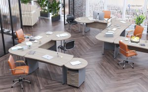 Коллекция «Berlin персонал» – симбиоз лофтовой эстетики и практичной функциональности. Разнообразие компонентов трансформирует пространство в гармоничную рабочую среду: эргономичные столы на металлокаркасе, многофункциональные тумбы, брифинги различных конфигураций и секторные элементы. Палитра декоров – от теплого Кокоболо и светлой березы до изысканного Мерано и Дрифтвуд – позволяет воплотить любую концепцию интерьера.