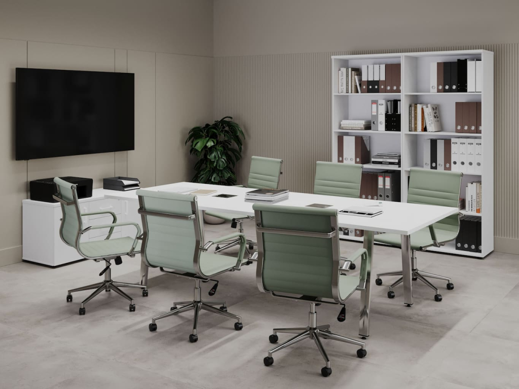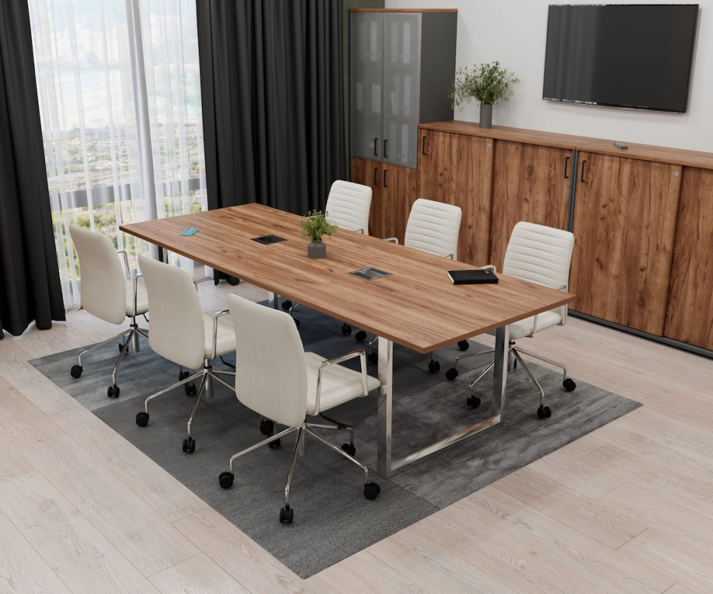 Серия «Стайл Проджект Директ Люкс» — это эталон организации рабочего пространства руководителя. Каждая деталь здесь продумана до мелочей, чтобы сочетать вдохновляющую эстетику с безупречной функциональностью. Главный архитектурный акцент коллекции — опоры: их зеркальный блеск и скульптурные линии не просто удерживают конструкции, но и задают тон всему интерьеру, наполняя его духом современности и утонченного вкуса.